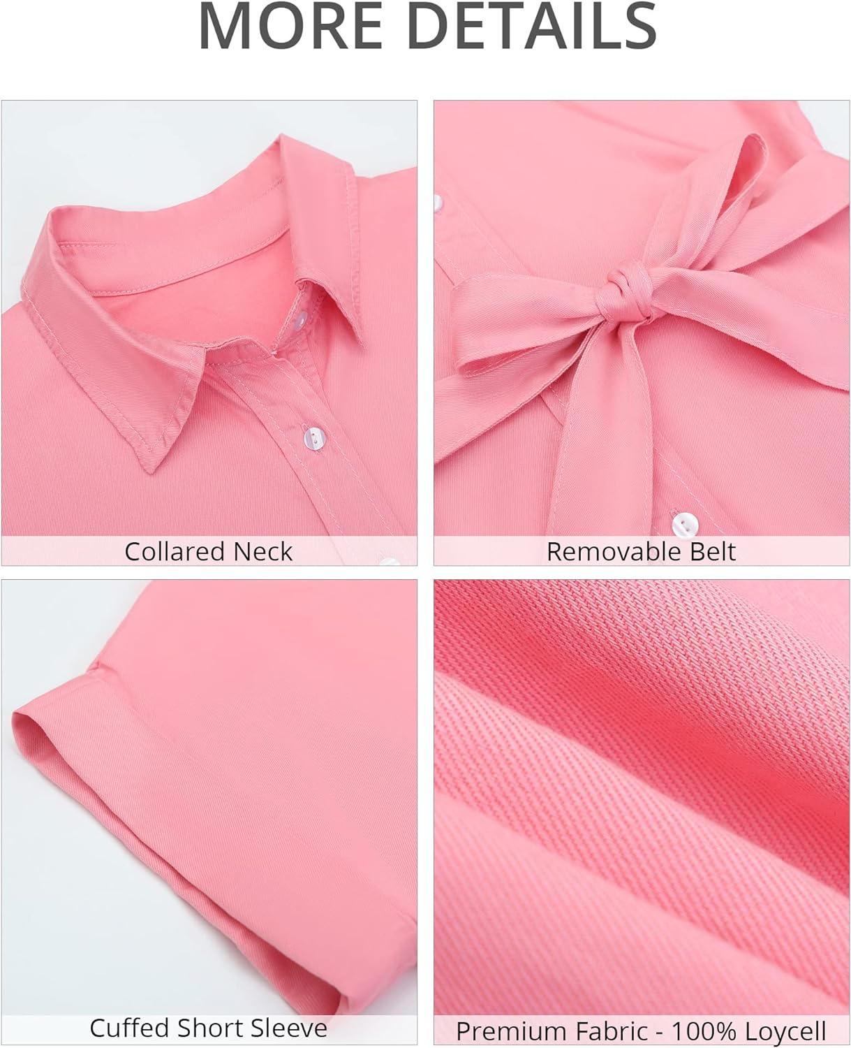 The relaxed fit shape of our short sleeve jean dress for women is comfy and suitable for most body shapes with a removable belt. You can wear it with or without the belt for different style.