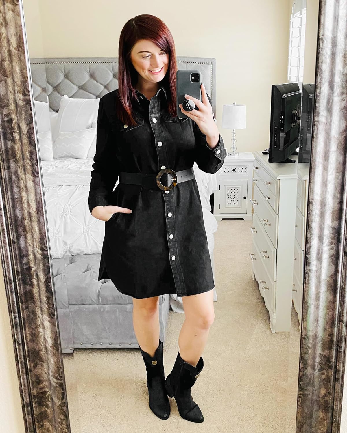 luvamia Denim Dress for Women 2024 Jean Spring Dresses Cowgirl Western Casual Long Sleeve Button Down Dress with Pockets